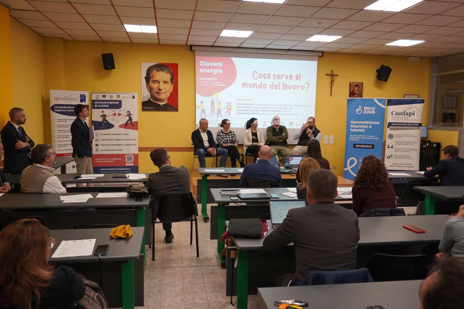 Una giusta retribuzione, valorizzazione del dipendente, crescita personale e sviluppo delle competenze. Sono queste le richieste principali che i giovani studenti di oggi rivolgono alle imprese, in un momento storico in cui, molto spesso, l’incontro tra domanda e offerta non sembra andare a buon fine. A far incontrare le due componenti ci ha pensato Apindustria Servizi, in collaborazione con Confapi Venezia, nell’evento, dal titolo “Dove sono tutti?”, andato in scena all’istituto “Don Bosco” di San Donà giovedì 23 ottobre. La giornata rientra nel progetto “Giovani Energie in Azione”, finanziato dal Fondo Sociale Europeo, tramite la Regione del Veneto.