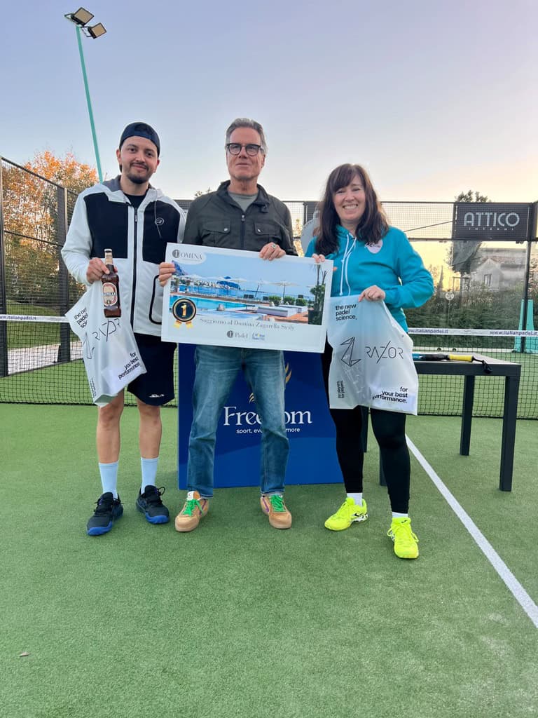 “Un ringraziamento particolare ai Main Partner che hanno supportato il Trofeo Città di Venezia: Domina Travel con le bellissime esperienze di viaggio in palio per i vincitori. Itas Assicurazioni, Ceccato Motors per 2 giorni di test drive con le Mini Couper, Razor brand emergente nel padel con premi tecnici ed abbigliamento sportivo, My Style Bags Milano con le sue esclusive creazioni artigianali dedicate al viaggio e al padel, Birra Castello, Erreà Sport e Std2 comunicazione”.