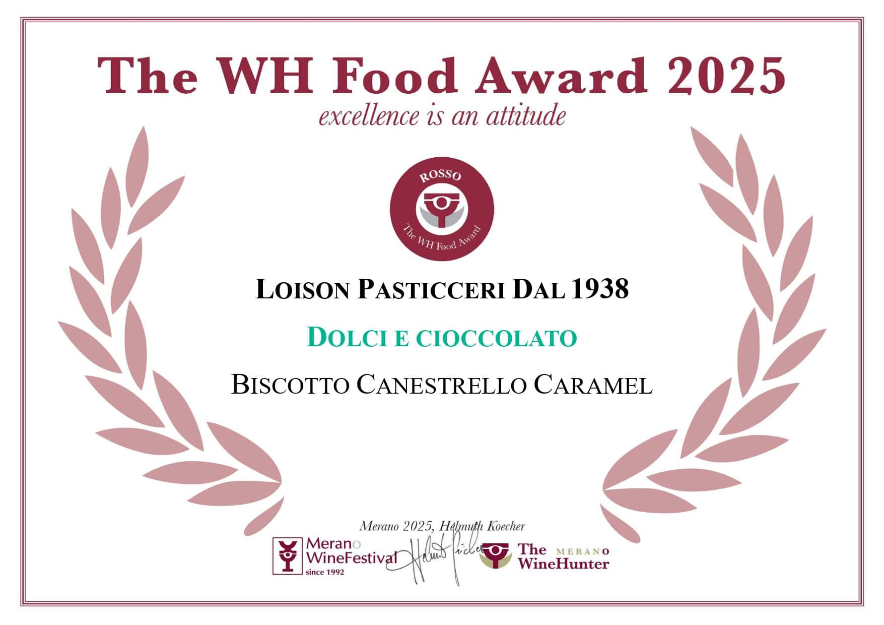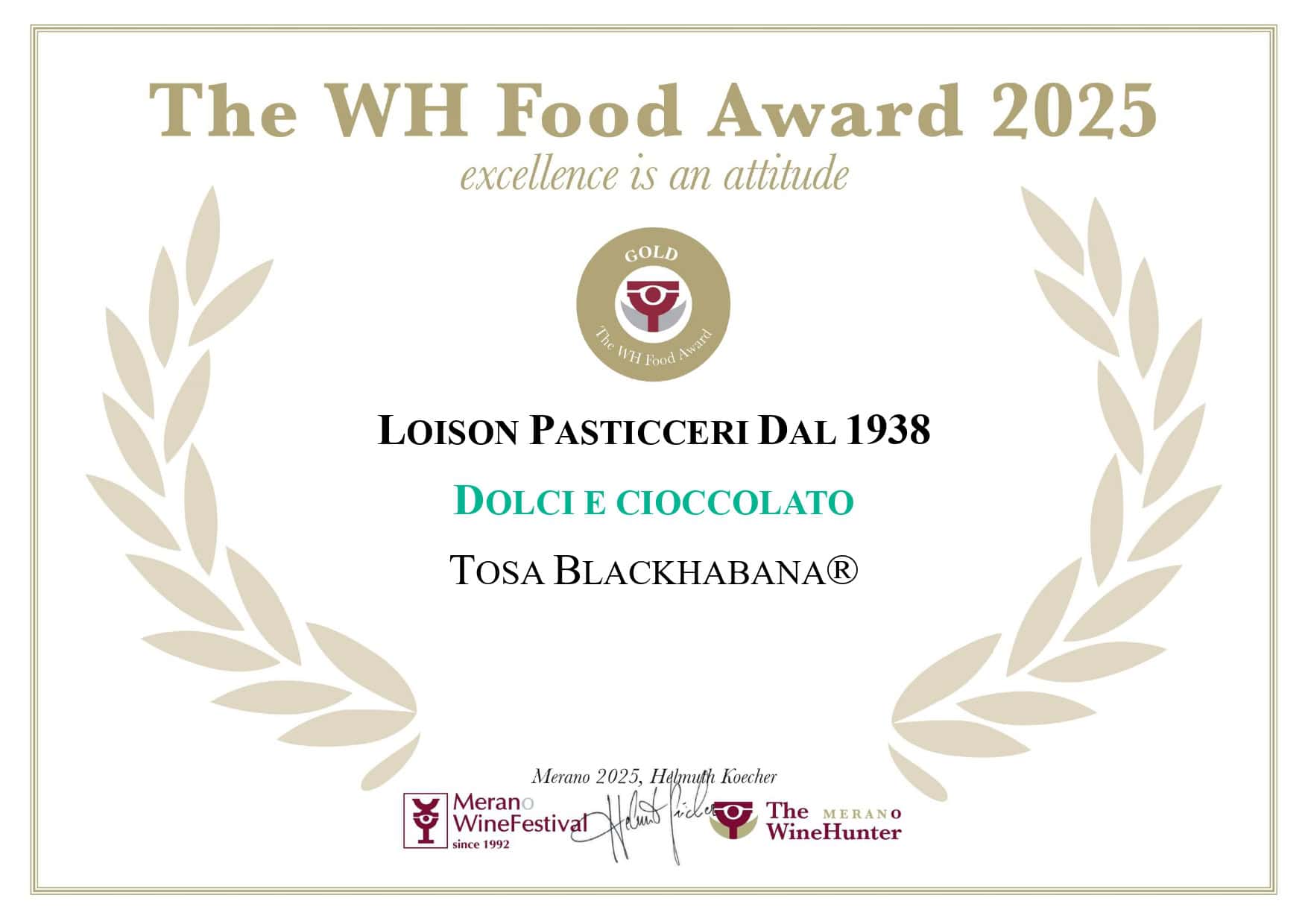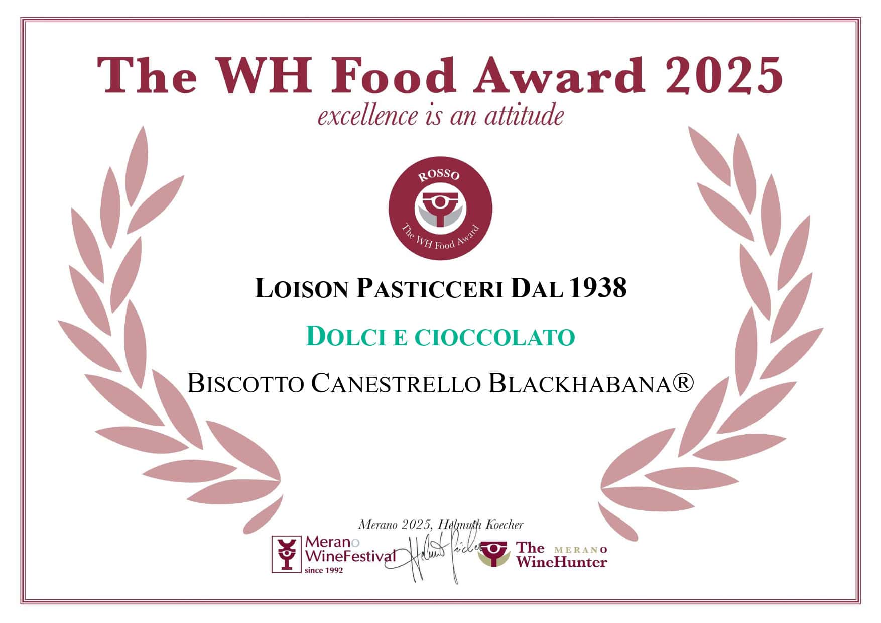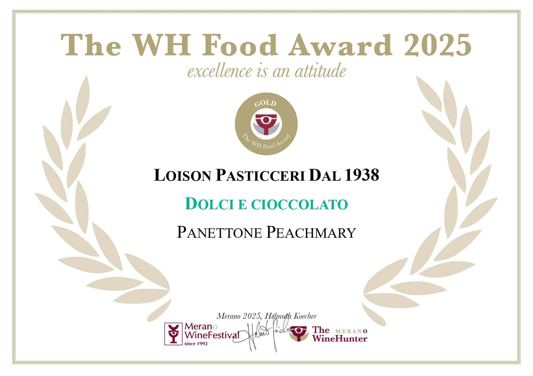 Winehunter award oro per il panettone novità 2025 Peachmary® e la torta tosa Blackhabana®: dolci che raccontano creatività e maestria Loison. Anche i biscotti canestrello Blackhabana® e Canestrello Caramel ricevono l’award rosso, confermando l’eccellenza della maison oltre i lievitati tradizionali. Con più di 45 premi dal 1997 e una presenza costante al Merano Winefestival fin dalle prime edizioni, Loison conferma la propria vocazione alla qualità e all’innovazione.