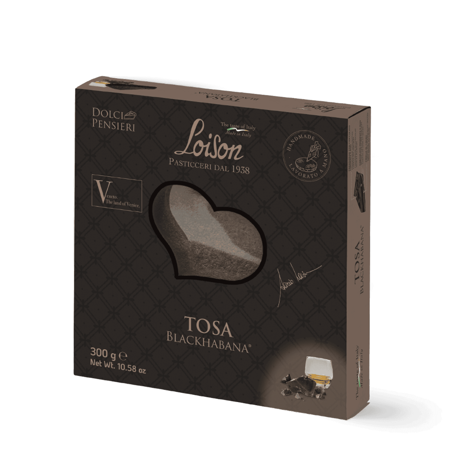 La novità 2025 Panettone PeachMary® è un incontro insolito tra la dolcezza solare della pesca e l’audacia del rosmarino, erba aromatica che raramente si concede al dessert. Dopo oltre due anni di ricerca e prove, nasce un lievitato unico: impasto soffice arricchito con pesche semicandite e note di rosmarino, completato da una crema alla pesca che dona rotondità e freschezza. La torta Tosa BlackHabana® rappresenta l’evoluzione della pasticceria firmata Loison: un incontro elegante tra cioccolato cru monorigine e rum, con tre strati che ne esaltano la complessità: frolla al cacao, ganache fondente e frangipane al cioccolato.