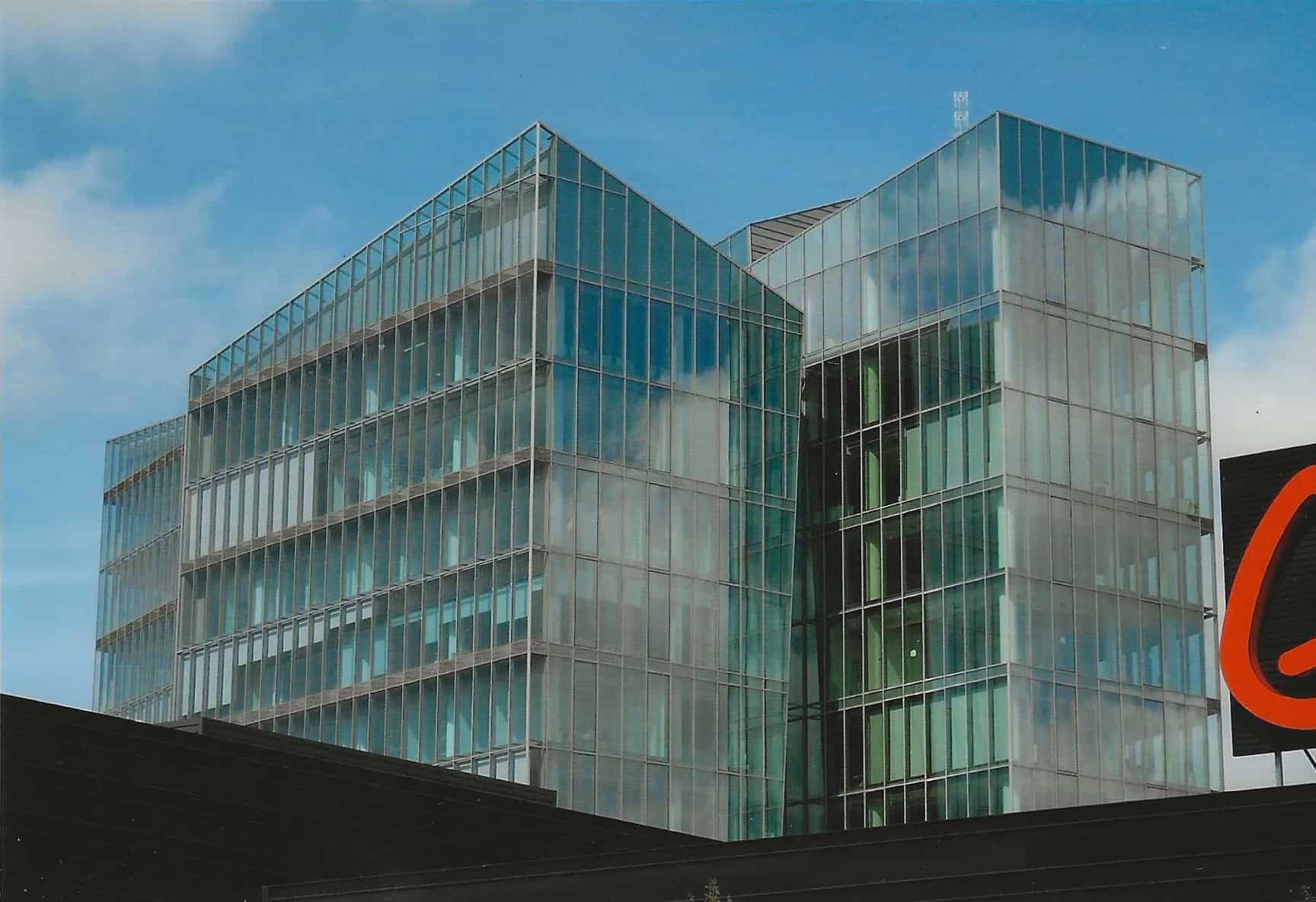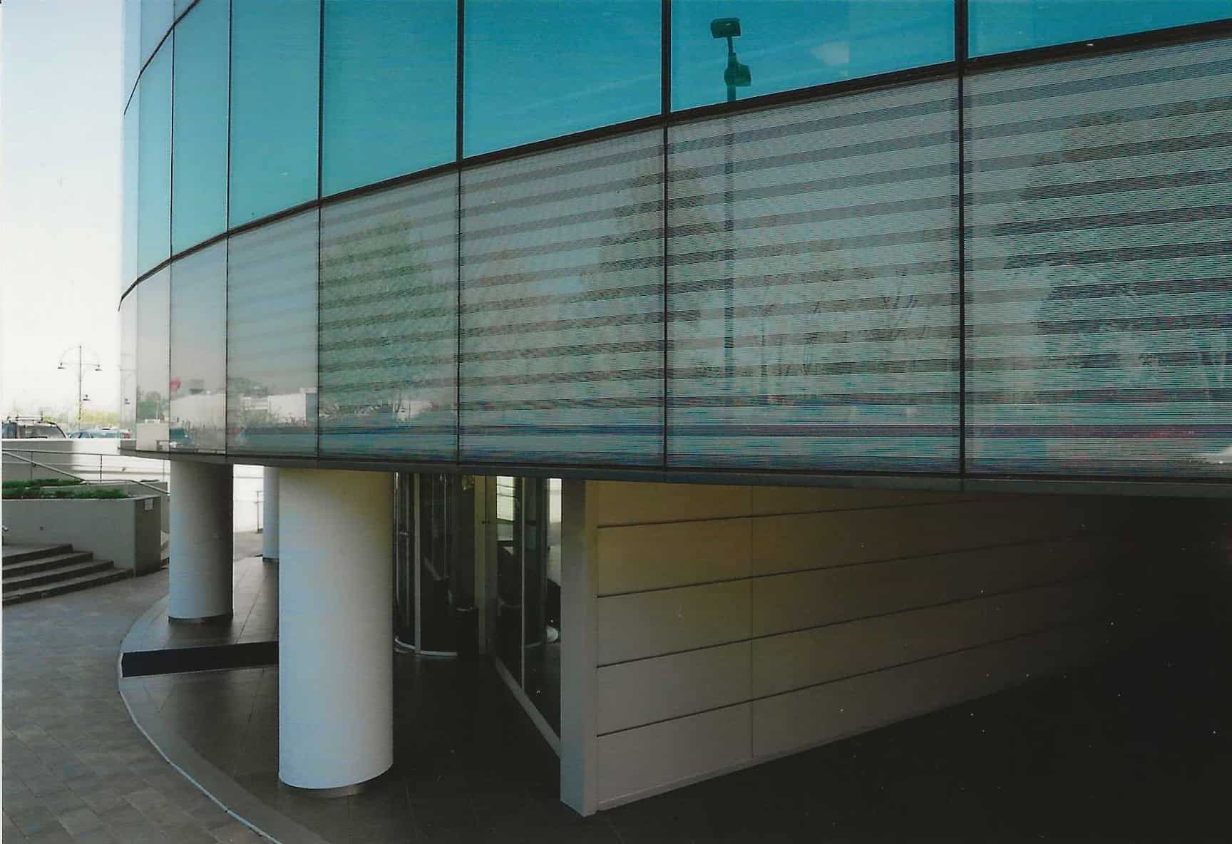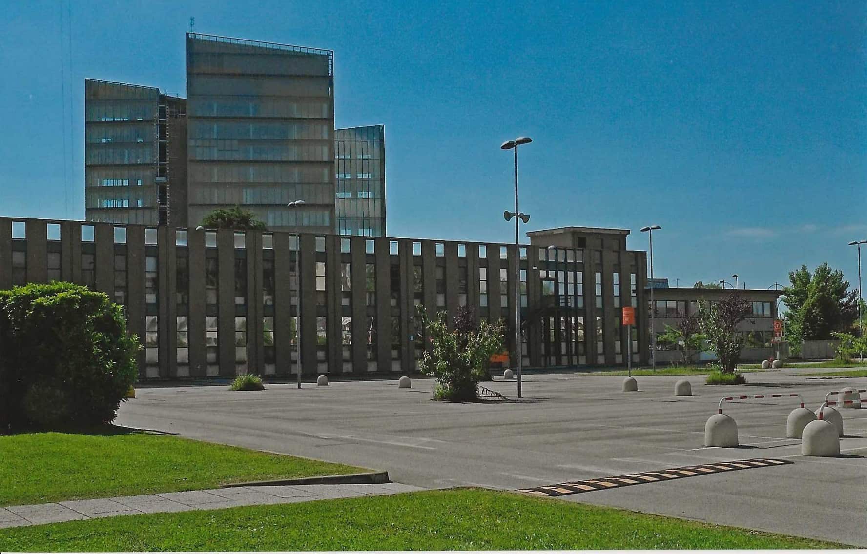 Proseguendo ulteriormente verso Nord appare l’imponente mole di un edificio di nove piani, oltre al piano terra e al garage sotterraneo. Adibito ad uffici, caratterizzato dalla base a forma di ellissi che si estende per tutta l’altezza, determinando l’accennata “imponenza” (architetto Ruggero Artico).