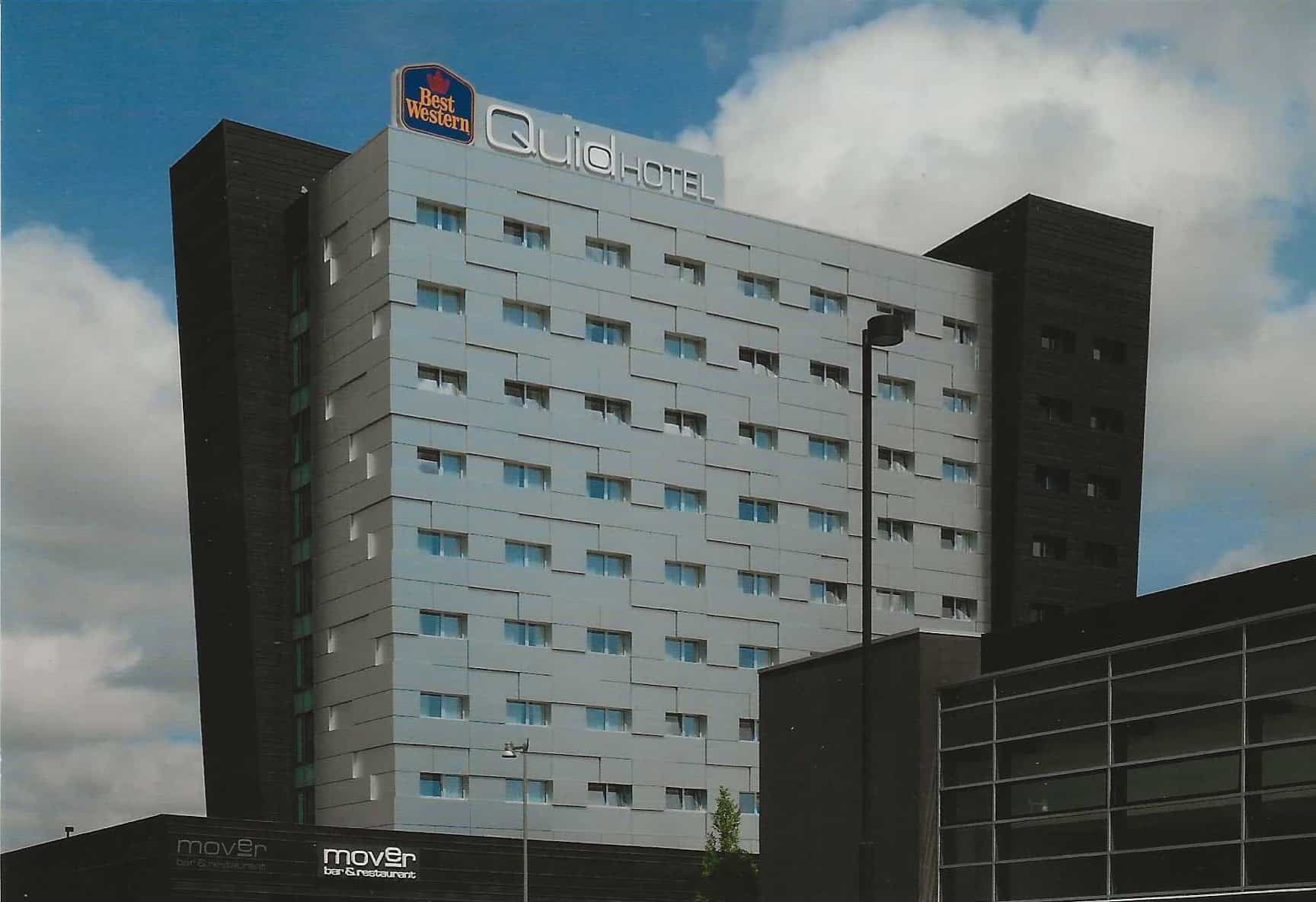 Attiguo alla Torre Eva sorge un hotel caratterizzato dalla contemporanea presenza di linee verticali e linee oblique, o apparenti tali.