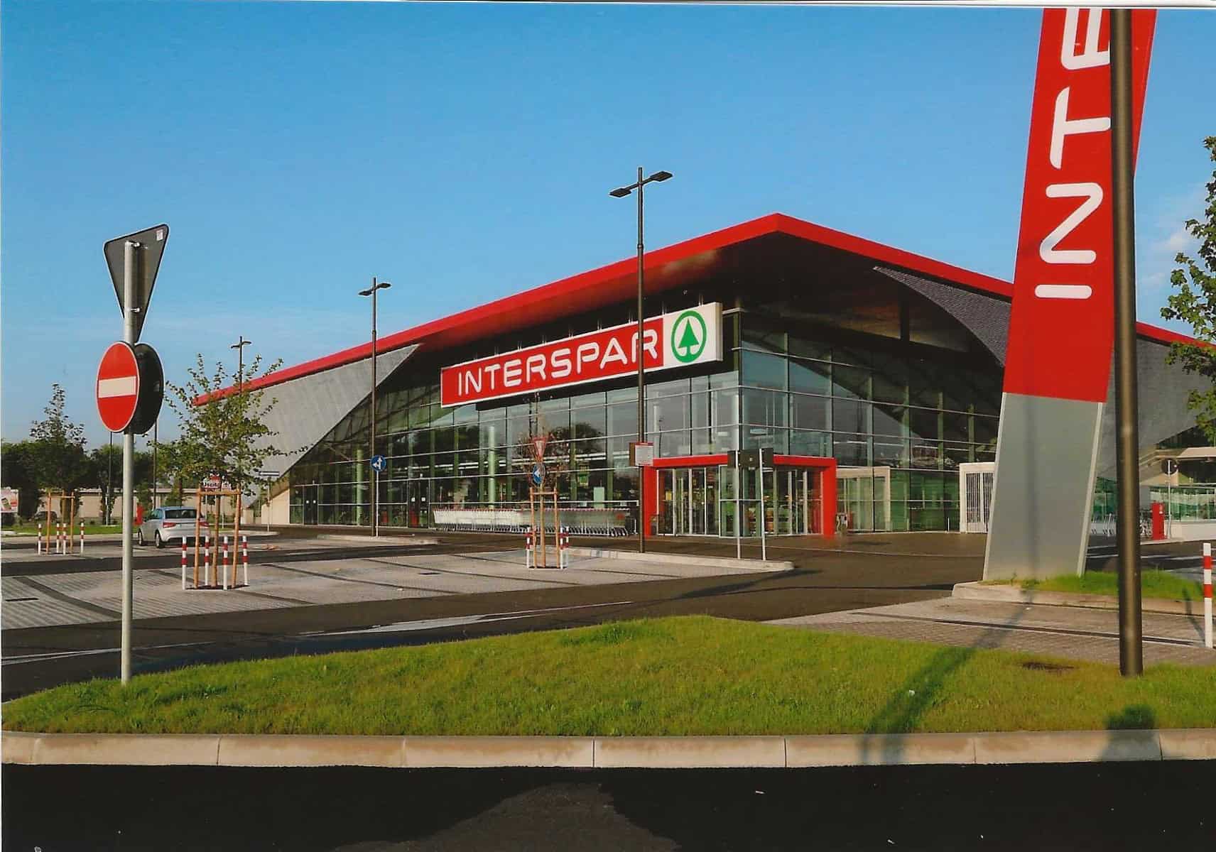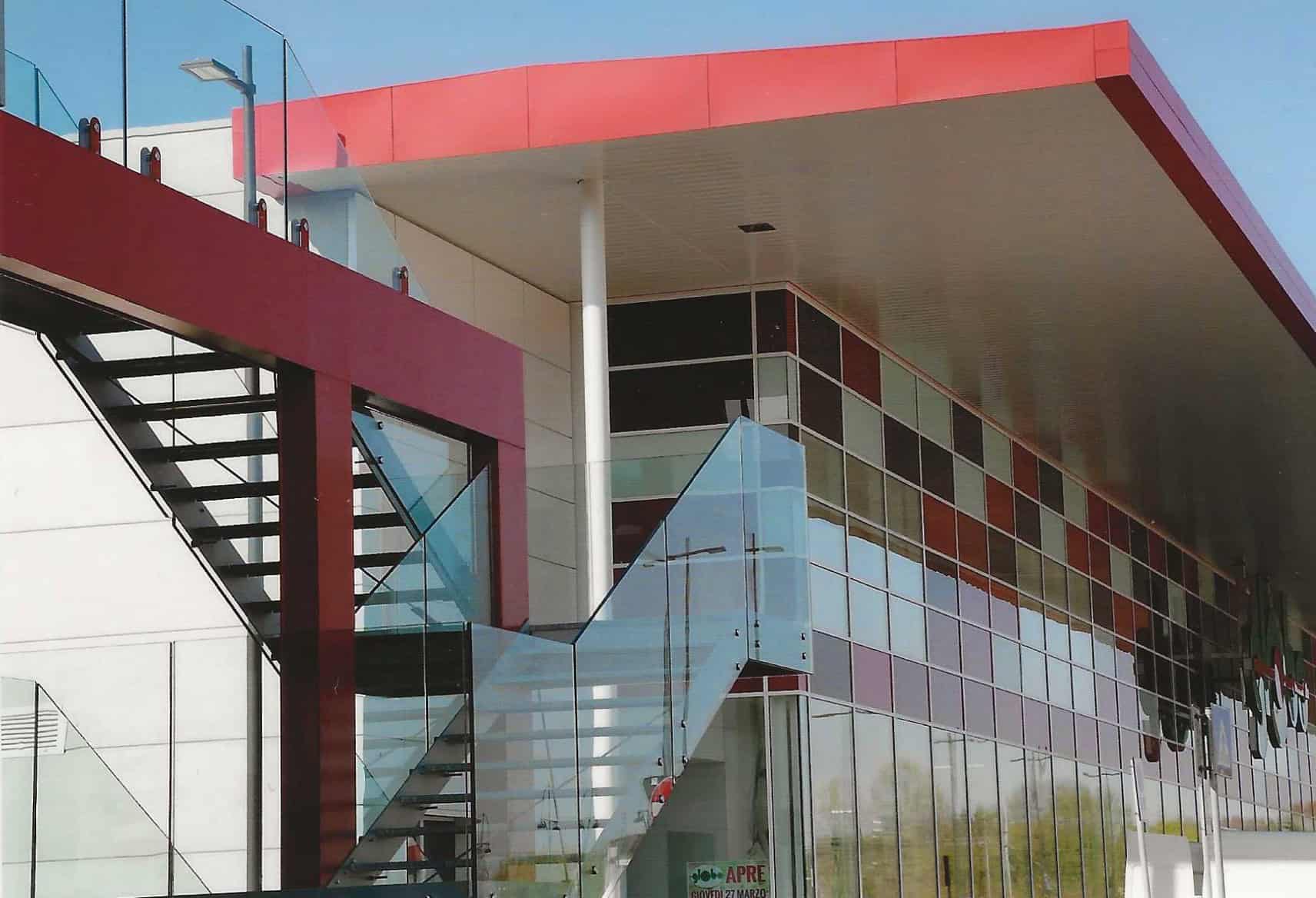 Principiando da Sud, lo sguardo viene attratto da un complesso “scenografico” (architetto Ruggero Artico), comprendente un centro commerciale articolato in due piani, con servizi di caffè, bar, ristorante, con ampi percorsi interni pedonali, anche per accedere ai parcheggi in parte interni ed in parte esterni. Il tutto vagamente echeggiante le linee orientali a pagoda, inserito in un’area a giardino.
