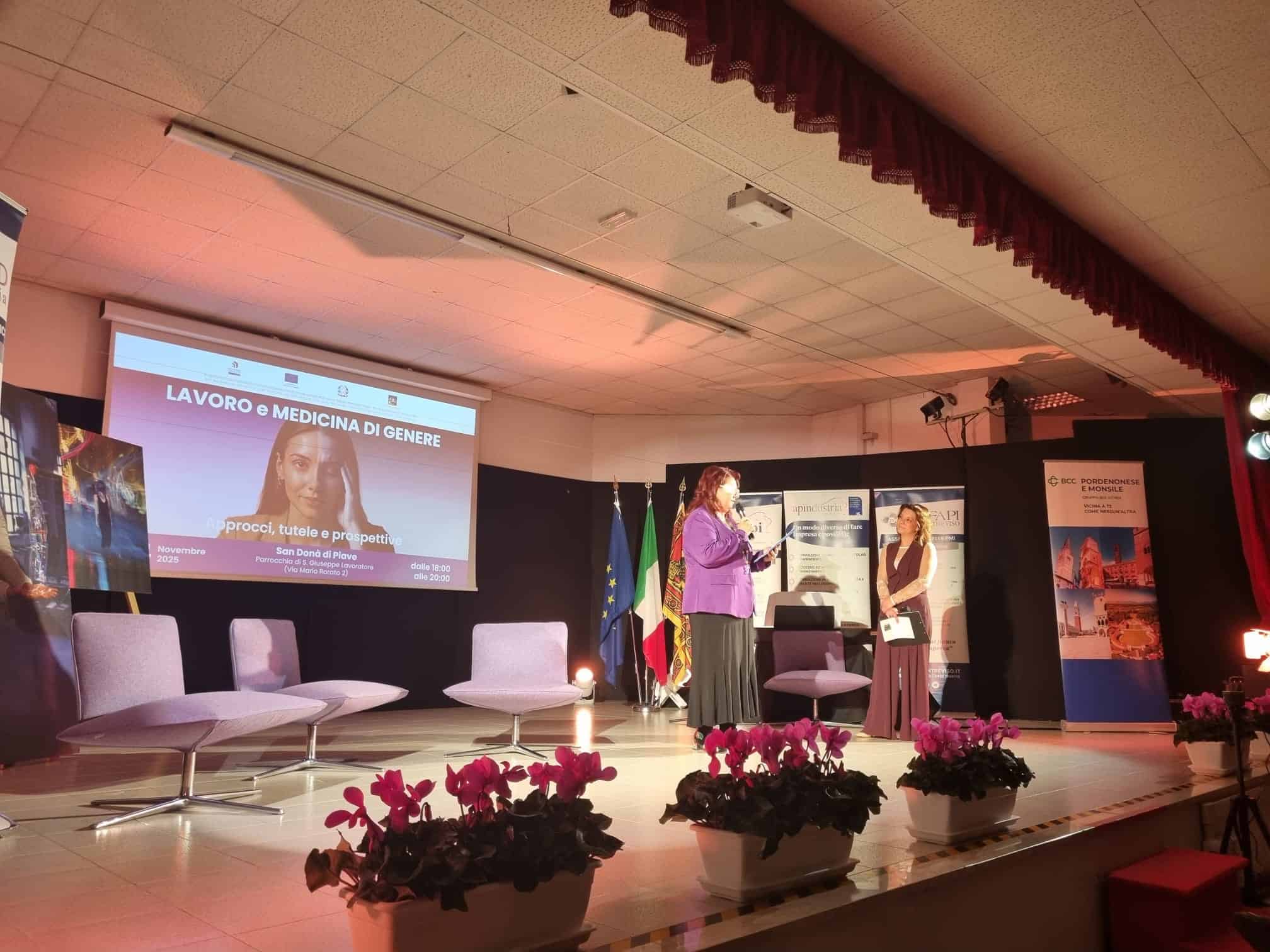 Si son discusse, infine, per quanto riguarda il rapporto titolare – dipendente, alcune misure concrete quali piani di prevenzione dedicati, flessibilità lavorativa, formazione specifica del personale HR e sensibilizzazione della leadership, al fine di creare ambienti di lavoro attenti alle esigenze di salute femminile. Ne hanno parlato Federica Casagrande, Fondatrice dell’Associazione “Una contro Tre”, Jessica Norbiato, Tutor dell’Associazione “La voce di una è la voce di tutte”, Luca Michieletto, Capo area San Donà BCC Pordenonese e Monsile e Cheti Ciuto, Presidente ConfapiD Venezia.