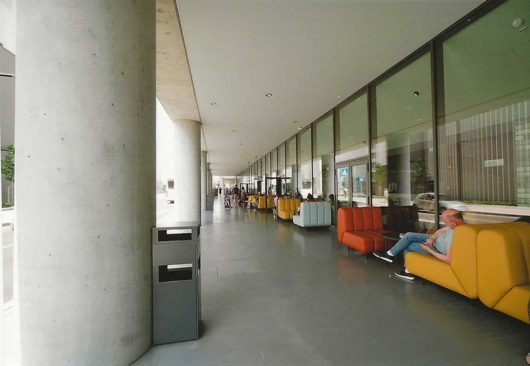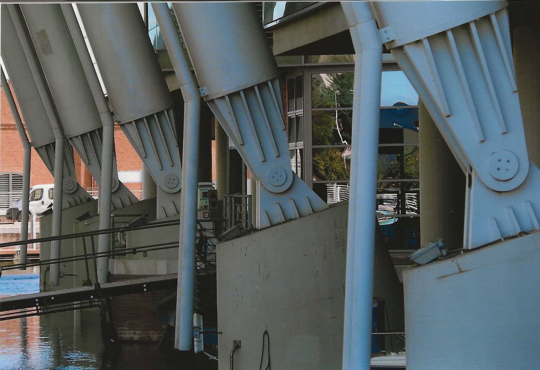 La darsena presenta una copertura in vetro, estesa dall’uno all’altro dei due corpi di fabbrica, molto “scenografica”. E soprattutto molto comoda per le operazioni di imbarco e sbarco, sostenuta da un sistema tecnologicamente molto complesso.