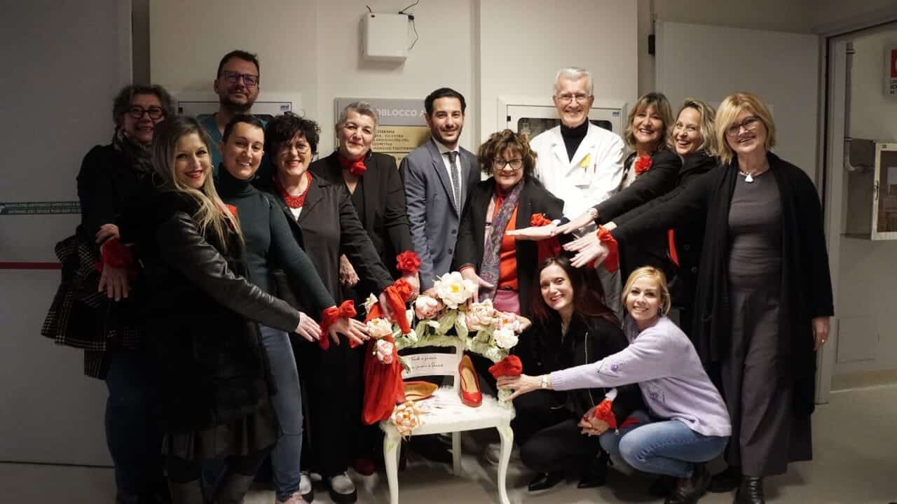 L’ospedale dimostra questa sensibilità in modo costante. Lo scorso anno, all’ingresso del reparto di Radiologia, è stato installato un altro simbolo speciale. Una vecchia sedia destinata al macero, recuperata e fatta “rifiorire” dalle donne dell’associazione “La Forza in Passerella” di Michela Bardi. Restaurata e decorata con scarpe rosse e la frase “FERMATI A PENSARE, MA NON PENSARE DI FERMARTI”, la sedia vuole essere un monito per ogni donna in visita. Anche quando ci si sente abbattute, c’è sempre la possibilità di una rinascita.