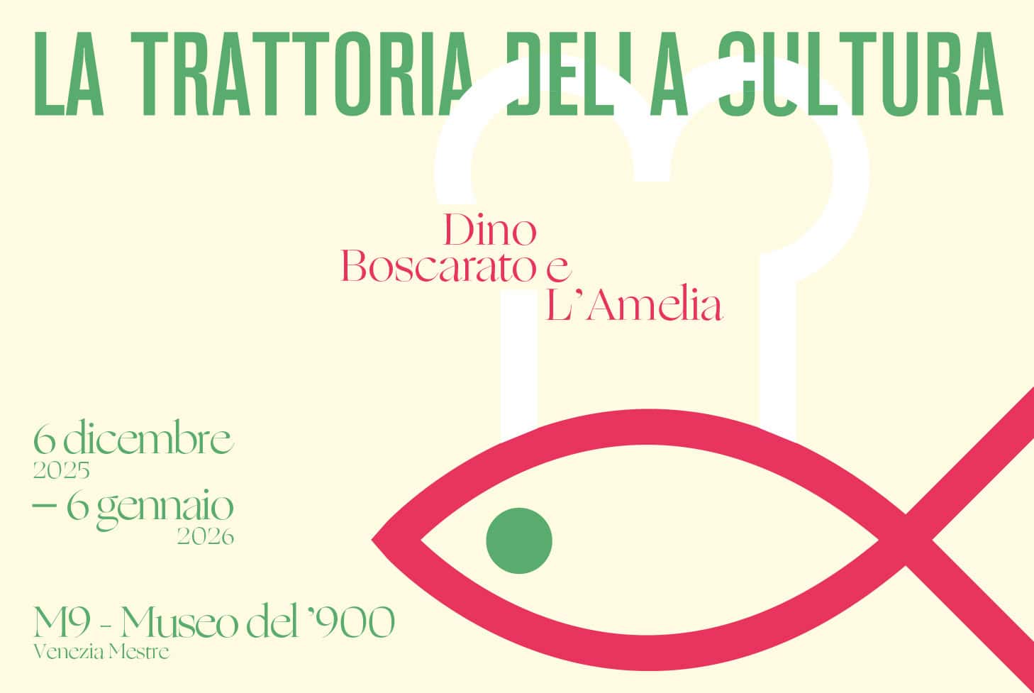 A Mestre, e più precisamente all’M9 – Museo del ‘900, si torna a parlare di Dino Boscarato e del suo famoso ristorante dall’Amelia. A settembre nell’Aula Magna era stato presentato il libro Sior Dino. L’avventura di un montanaro che guardava oltre e della Trattoria dall’Amelia di Mestre (Lecce, Youcanprint, 2025) scritto dal figlio Marco Boscarato (la nostra recensione qui: https://www.enordest.it/2025/09/21/sior-dino-e-lavventura-dellamelia/). Ora quella storia, molto significativa per la città, riprende vita in una mostra, allestita nella Sala Radici al piano terra del museo, intitolata “La trattoria della cultura. Dino Boscarato e l’Amelia”. L’esposizione sarà aperta al pubblico dal 6 dicembre 2025 al 6 gennaio 2026 e ricostruisce un articolato ritratto della storica trattoria e del suo titolare: una realtà che non si limitava alla ristorazione, ma che rappresentava un varo e proprio luogo di socialità, di cultura, di arte e di gusto.