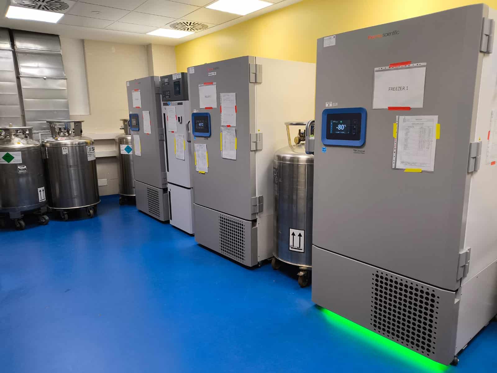 Conservazione a lungo termine: i campioni vengono custoditi in freezer con monitoraggio continuo di temperatura, allarmi e backup per garantire la loro stabilità e qualità nel tempo.