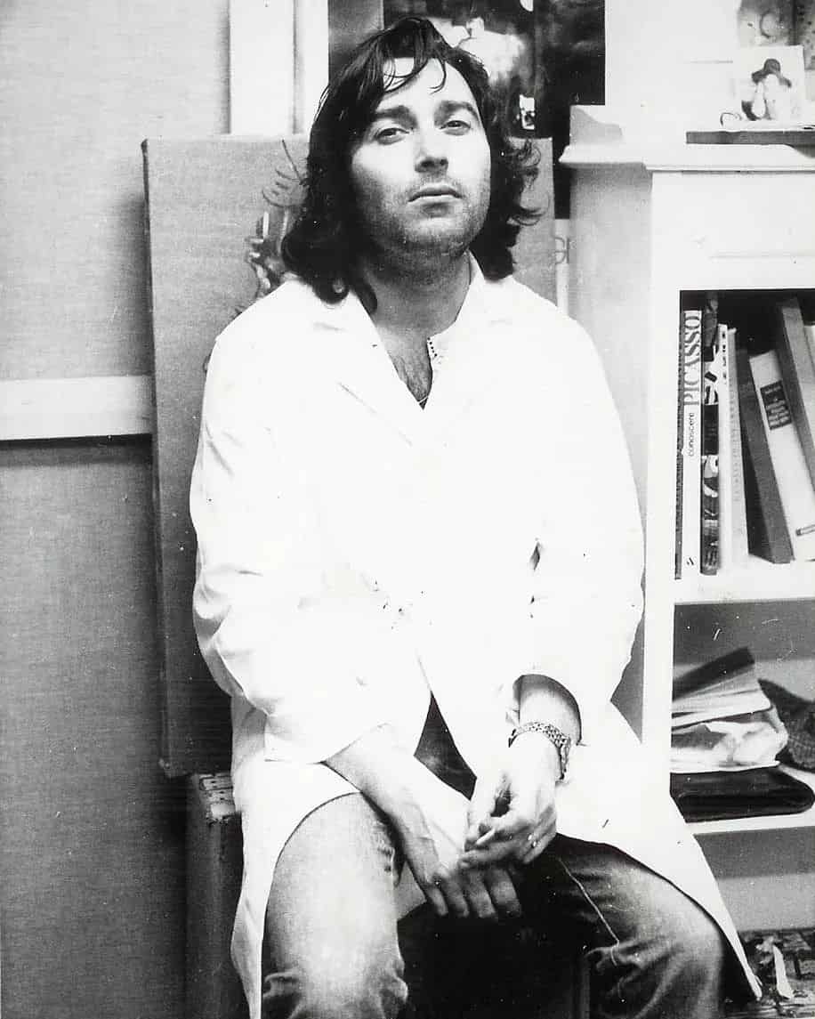Lui, nato a Valona in Albania nel 1942, si trasferisce a due anni con la famiglia nel veneziano. Si diploma all’Istituto d’Arte di Venezia in Arti Grafiche, ma da sempre vive in un contesto fortemente legato alla cultura artistica del Novecento: il cugino Nello è stato uno degli esponenti del Futurismo veneto; un altro cugino, Pino Ponti, fa parte dell’ambiente milanese di Corrente.