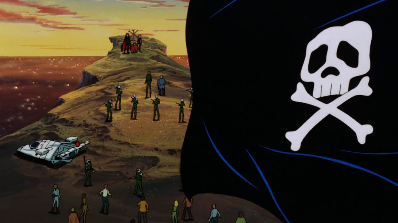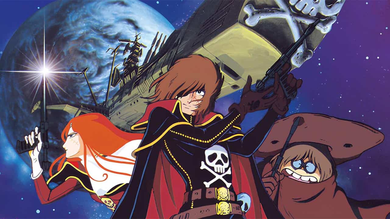 Capitan Harlock è un emarginato diventato pirata – alla guida di una astronave spaziale, l’Arcadia – dopo essersi ribellato al governo della Terra e l’apatia generale che caratterizza l’umanità dell’anno 2977. Diretta da Rintarō, la serie è caratterizzata da una narrazione drammatica. Benché sia una space opera, l’anime solleva una serie di questioni, dalle sfide della vita degli uomini ai limiti della violenza come una soluzione efficace ai problemi.