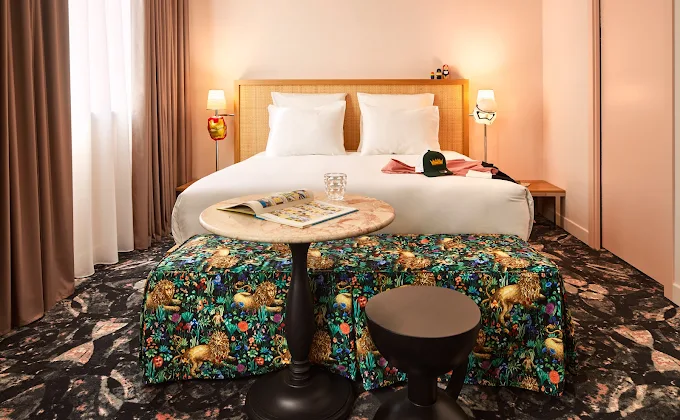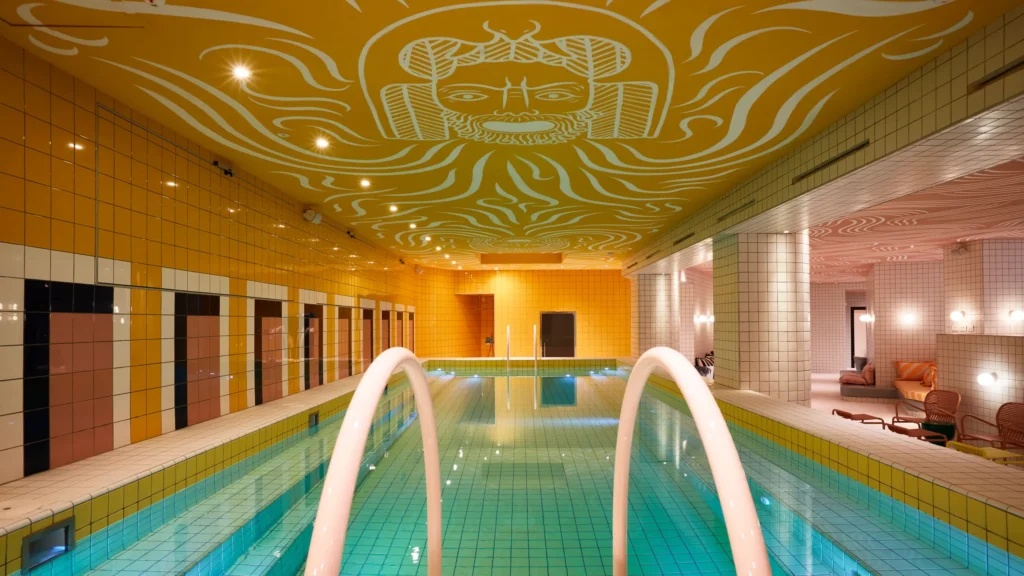 I tratti tipici di Mama Shelter – le mascherine da comodino e la grafica ispirata alla street art – sono ovviamente presenti e le camere variano da medium a large a xl. I bagni piastrellati richiamano i Mama Baths; colorato spazio al piano inferiore con piscina in stile romano, bagno turco, sauna e palestra.