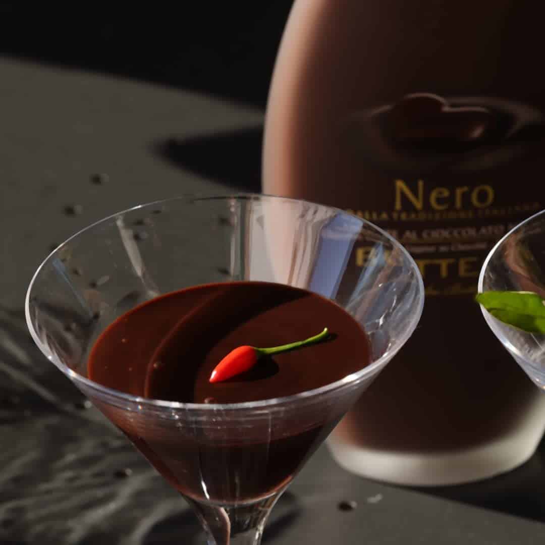 Nero Bottega si presta infine ad essere arricchito con una spolverata di granella di noci o di nocciole, mentre i palati più robusti lo apprezzeranno miscelato con un cucchiaino di polvere di peperoncino, che richiama tanto la tradizione calabrese quanto una delle più apprezzate varianti del cioccolato di Modica.