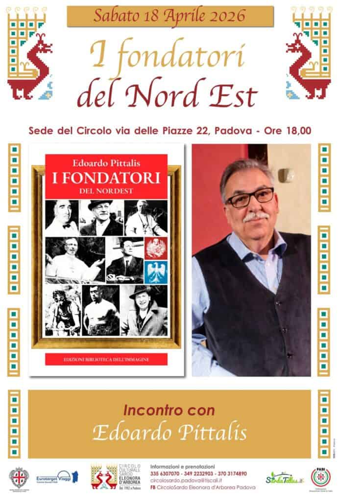 Oggi 18 aprile, alle ore 18, a Padova, nel circolo culturale sardo “Eleonora d’Arborea”, in via delle Piazze n.22, incontro col giornalista e scrittore Edoardo Pittalis, nonchè direttore di http://www.enordest.it, che presenterà il suo nuovo libero “I Fondatori del Nordest” (Edizioni Biblioteca dell’Immagine). È la prima presentazione a Padova. A fare gli onori di casa la presidente del circolo Mariaelena Tanda. Per prenotazioni chiamare il numero 3356307070.