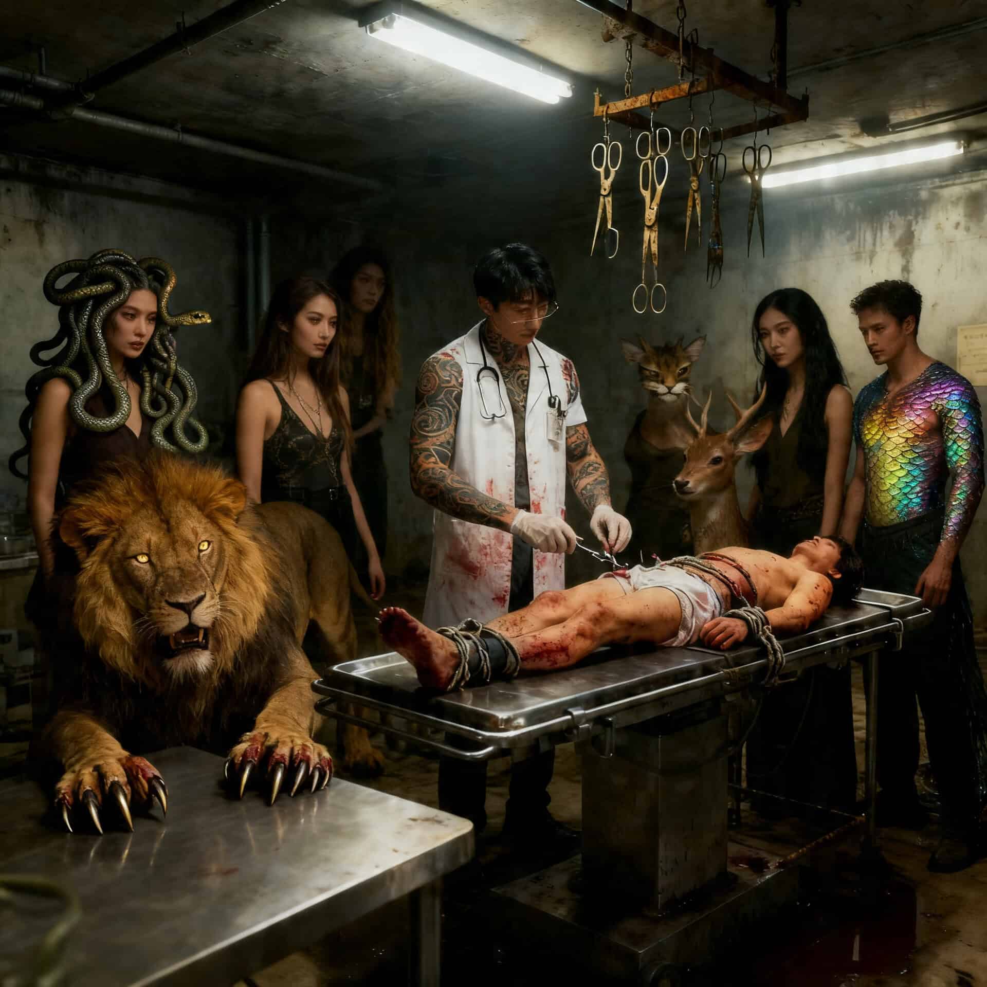 Ma era andato oltre “sconfinando nell’illegale e anche nell’illecito” come ha scritto “the BODY”: Kim aveva “bestializzato l’umano”. A dimostrazione, la rivista ha pubblicato la documentazione, cioè i disegni originali del medico, nei quali si vedono donne seminude con testa di Medusa, di gatta e di cerbiatta; uomini con zanne al posto dei denti, artigli metallici e il volto coperto da musi di leopardo, leone, orango; altri maschi umani con il torso coperto di scaglie iridescenti.