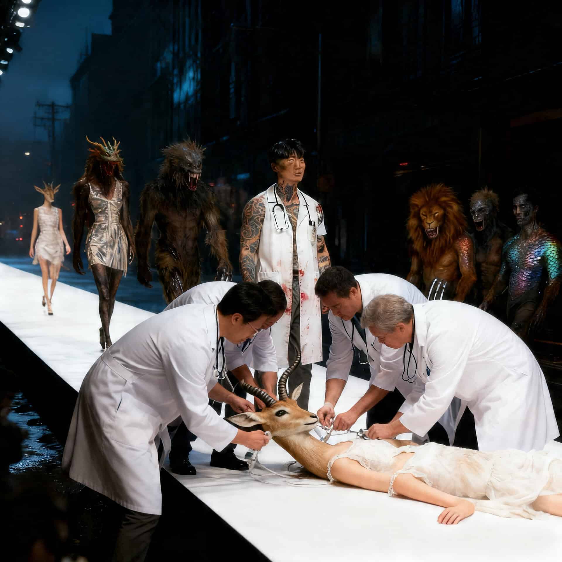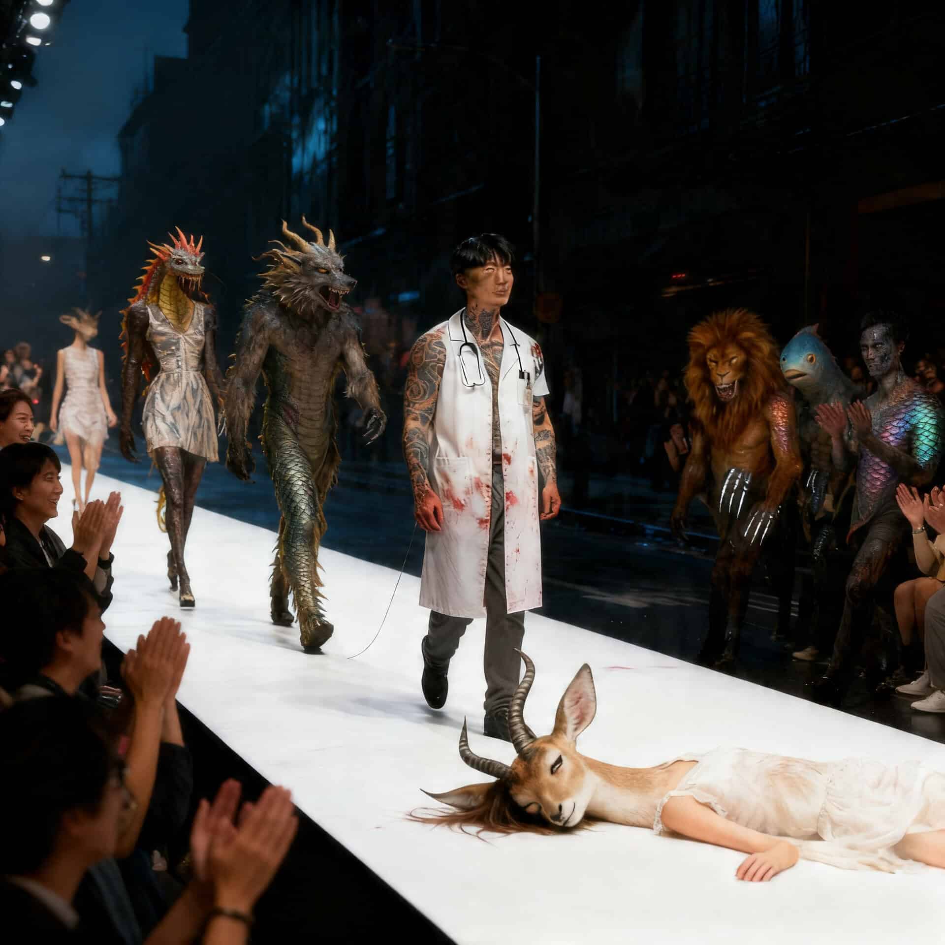 Per la prima esibizione di alcune creature è stata scelta una festa carnevalesca; in seguito le location sono stati i bar, il grande mercato di Seul, varie fermate d’autobus: la gente applaudiva quelle maschere umane che erano le più originali viste fino ad allora. Ma un giorno una ragazza “gazzella” è svenuta durante una sfilata e al pronto soccorso non sono riusciti a liberarla dalla maschera e quindi a salvarla: la testa d’animale non era di cartapesta ma parte integrante del corpo, quasi una seconda pelle: era la rivelazione della variante di Kim.