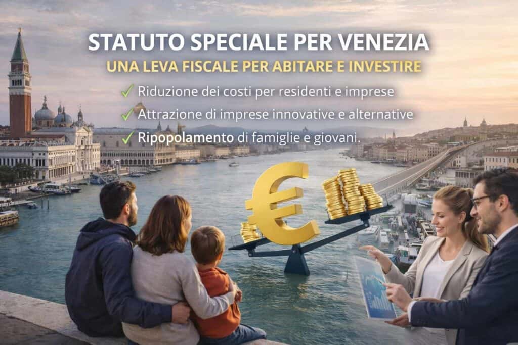 Ha aperto Gian Angelo Bellati che si è soffermato in particolare sul ruolo importante dello Statuto speciale (da non confondere con la Legge speciale) in una città come Venezia e di conseguenza la leva fiscale atta a riportare l’imprenditoria come forma di sviluppo nel comune e nel territorio circostante.