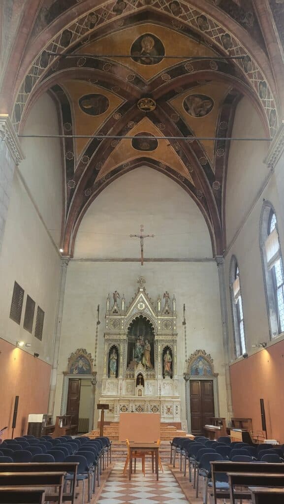 La Fondamenta è a due passi, dalla poco conosciuta (ma che vale la pena di visitare) Cappella dei Lucchesi. Faceva parte della chiesa di Santa Maria dei Servi, distrutta dal solito Napoleone, nel 1815, ed era fin dal Trecento la sede della comunità dei mercanti lucchesi, in pratica i “paroni” della confraternita e dell’arte dei Marzeri, ovvero i venditori di stoffe pregiate e seta. Oggi non rimangono che inquietanti rovine.